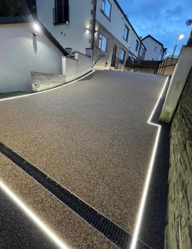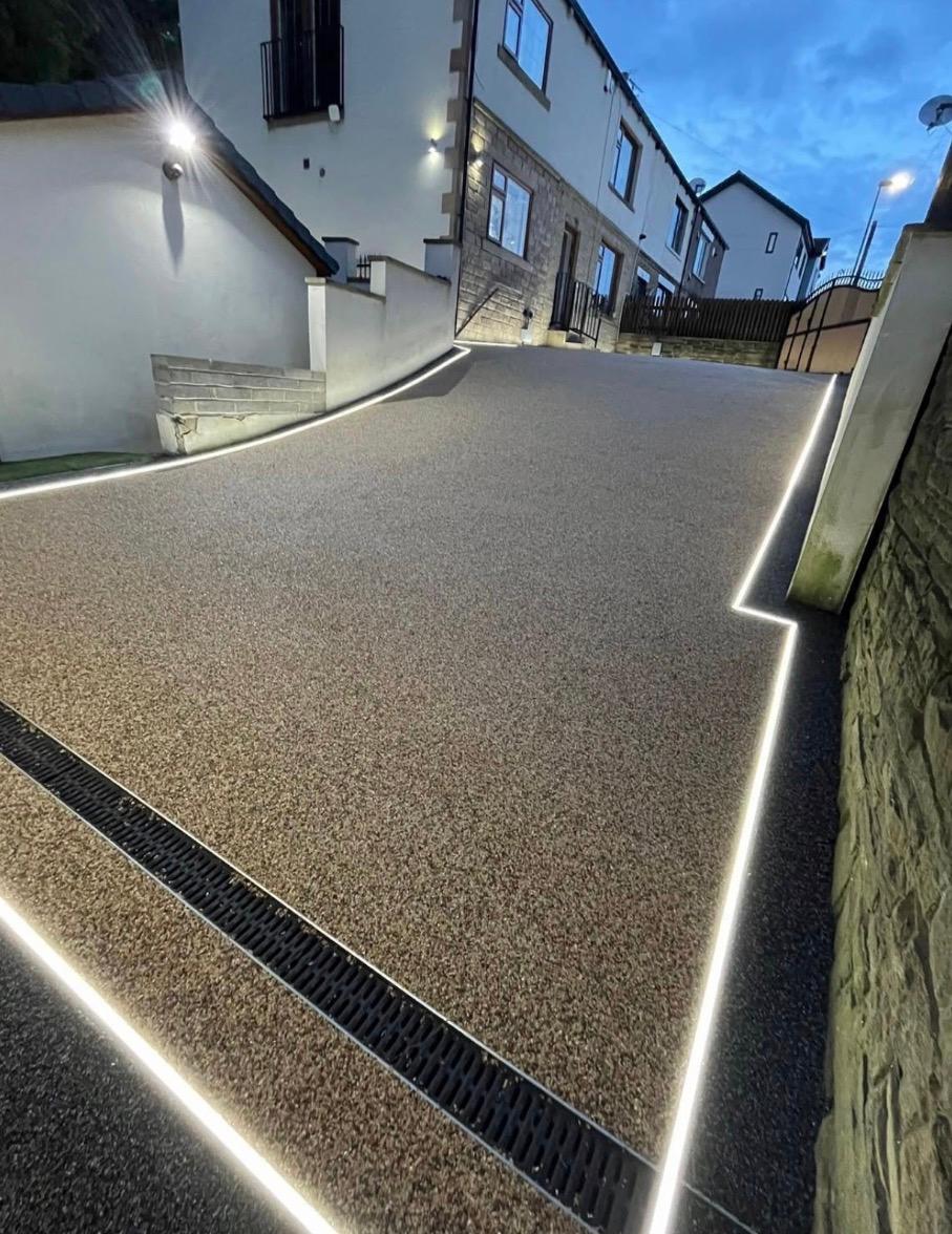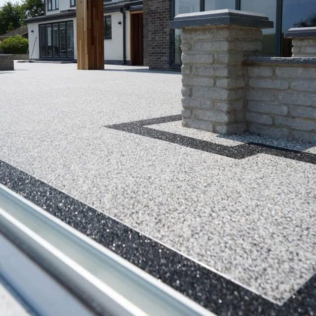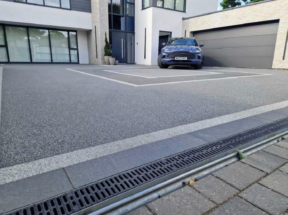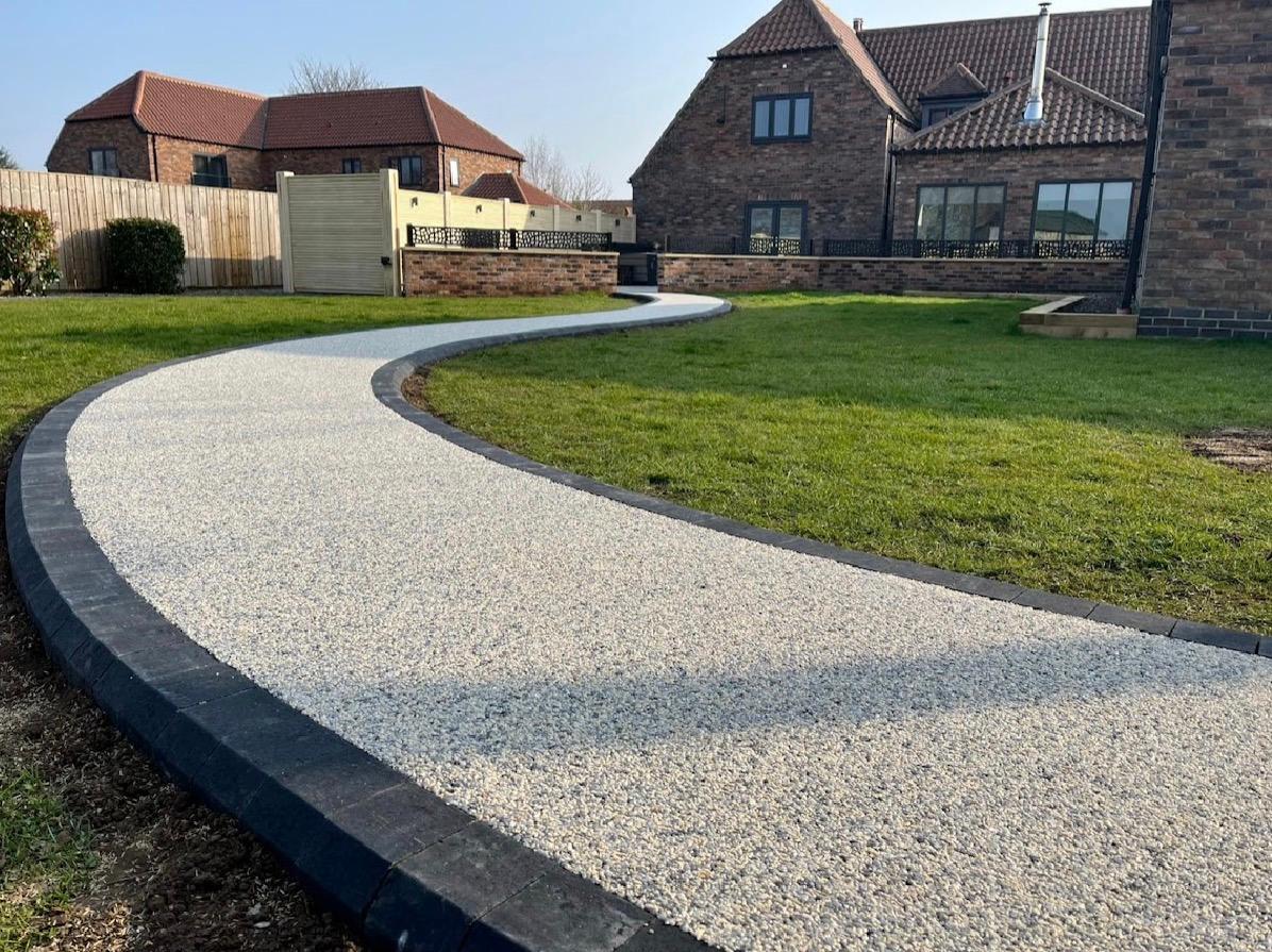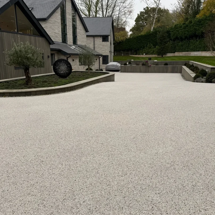 Resin bound surfacing provides a seamless, permeable finish suited to contemporary residential properties and high-end developments.