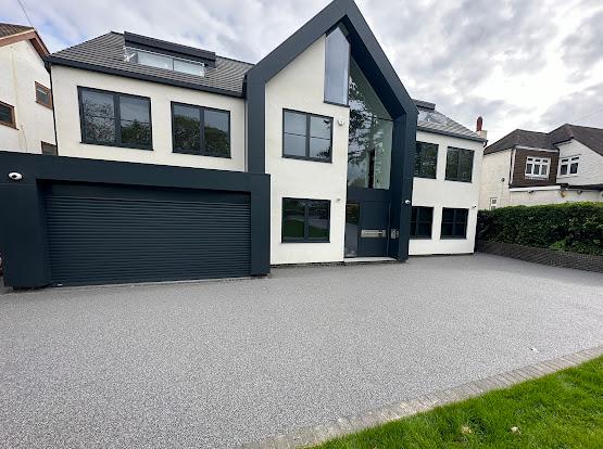Premium resin bound and asphalt systems are installed using professional surfacing techniques to deliver a refined architectural finish.